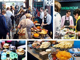 Näyttelyiden juhlavaksi keskipisteeksi kootaan herkullinen buffet-pöytä yhteistyökumppaneidemme tuotteista. Näytteilleasettajien ständeillä voi tavata toimittajien edustajia ja kysellä tuotteista tarkemmin.