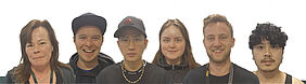 Kuvassa perehdytystiimi: vasemmalta Katri Salin, Aarne Paukkunen, Daniel Le, Sevilla Leppänen, Sami Hänninen ja Ang Phuo